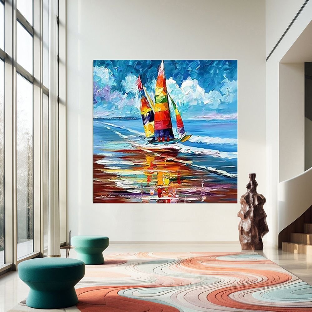 Home > Abstract oil painting Boats Oil Canvas Painting Sea Landscape 100% handmade Wall Art Picture for Living Room Home Decor