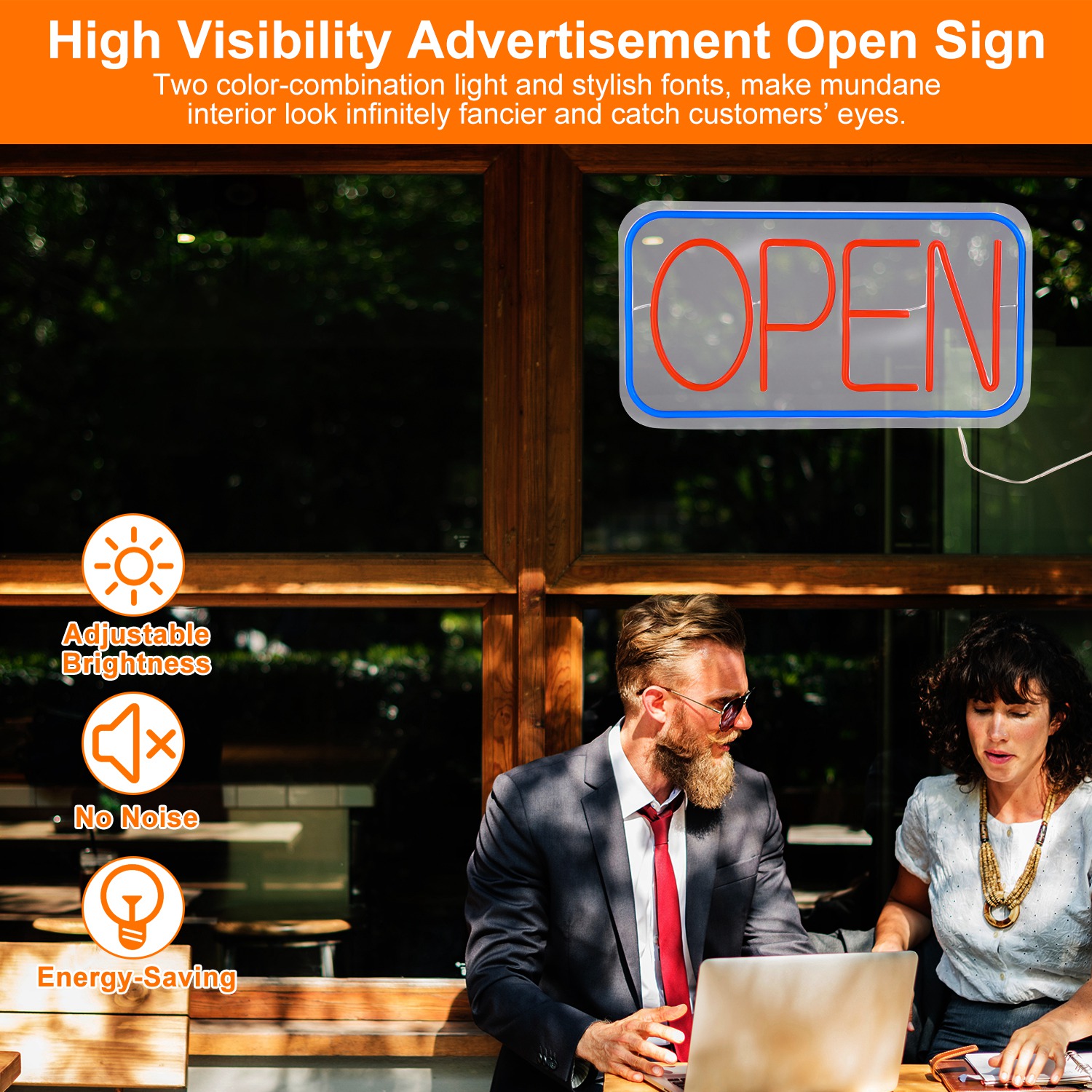 LED Open Sign 16.5x9.1in Business Neon Open Sign Advertisement Board with 11 Levels Adjustable Brightness