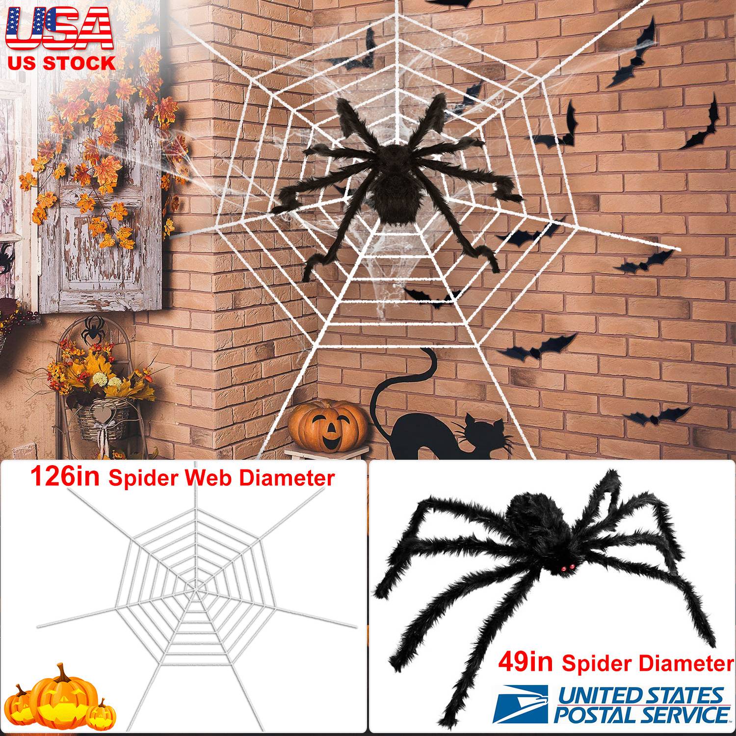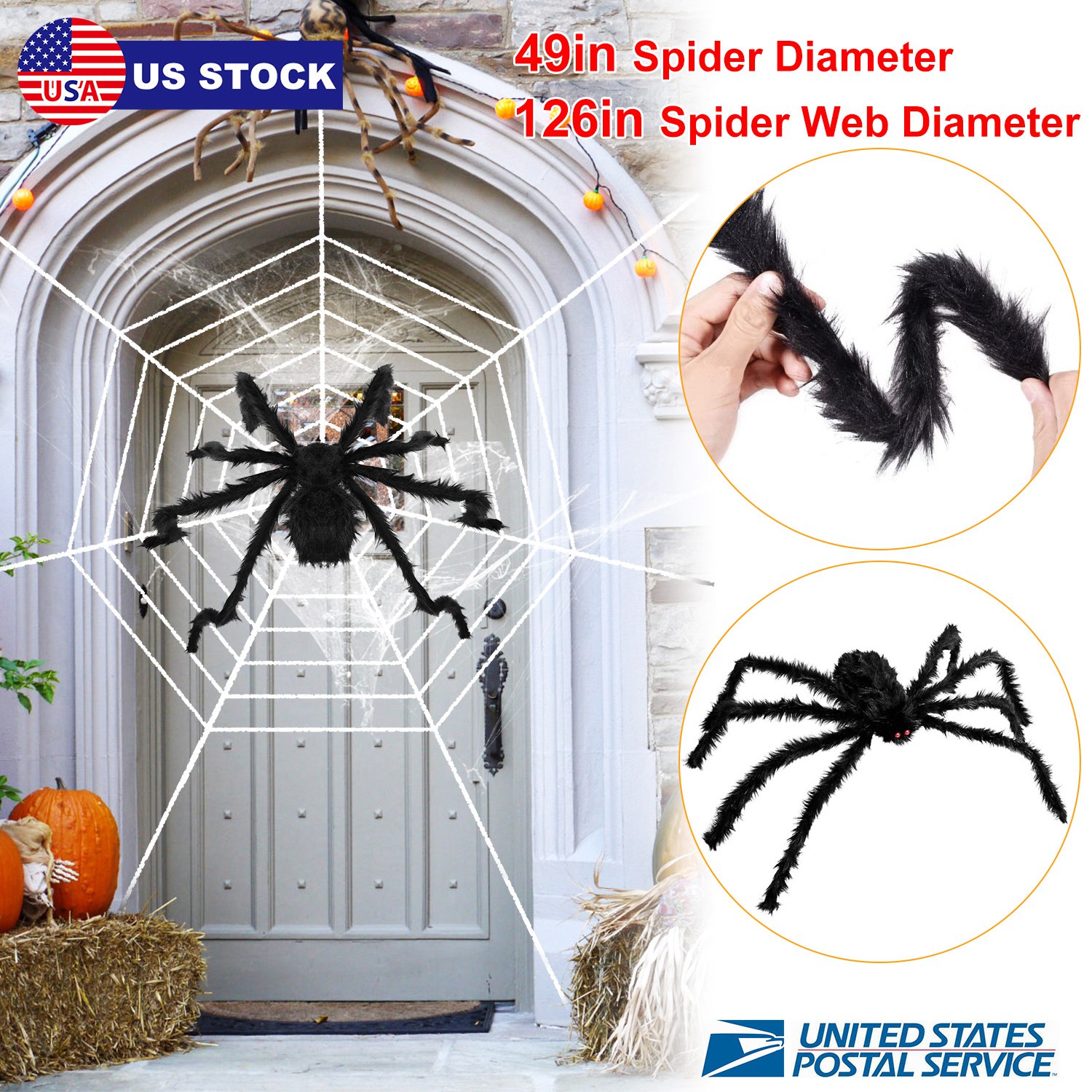 Home > Halloween Decorations Spider Outdoor 49inch Halloween Spider with 126 inch Tarantula Mega Spider Web Hairy Poseable Scary Spider Outdoor Yard Creepy D