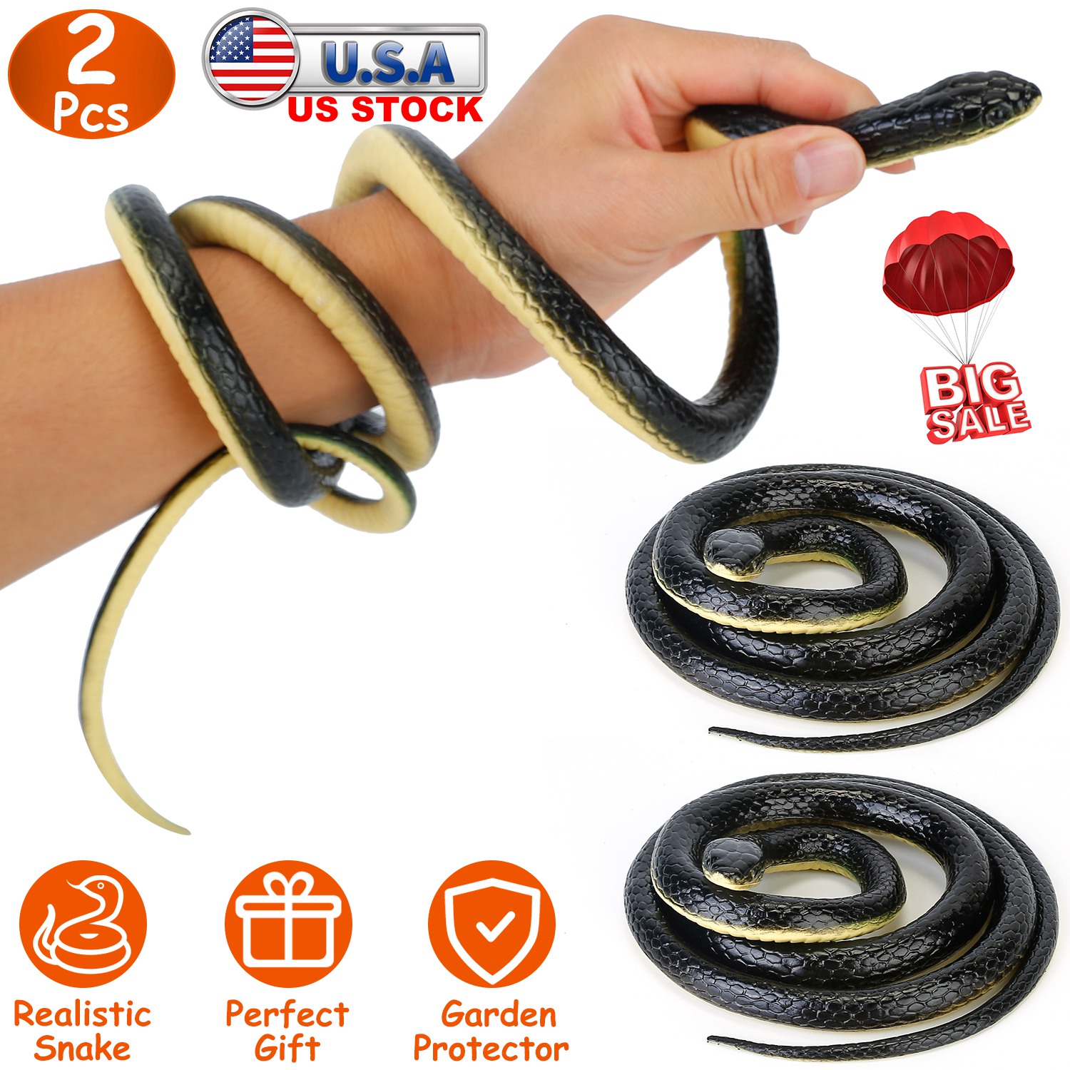 2Pcs 50in Long Realistic Rubber Snakes Toy Thick Durable Fake Snake Prank Toy For Halloween Decoration Trick Game