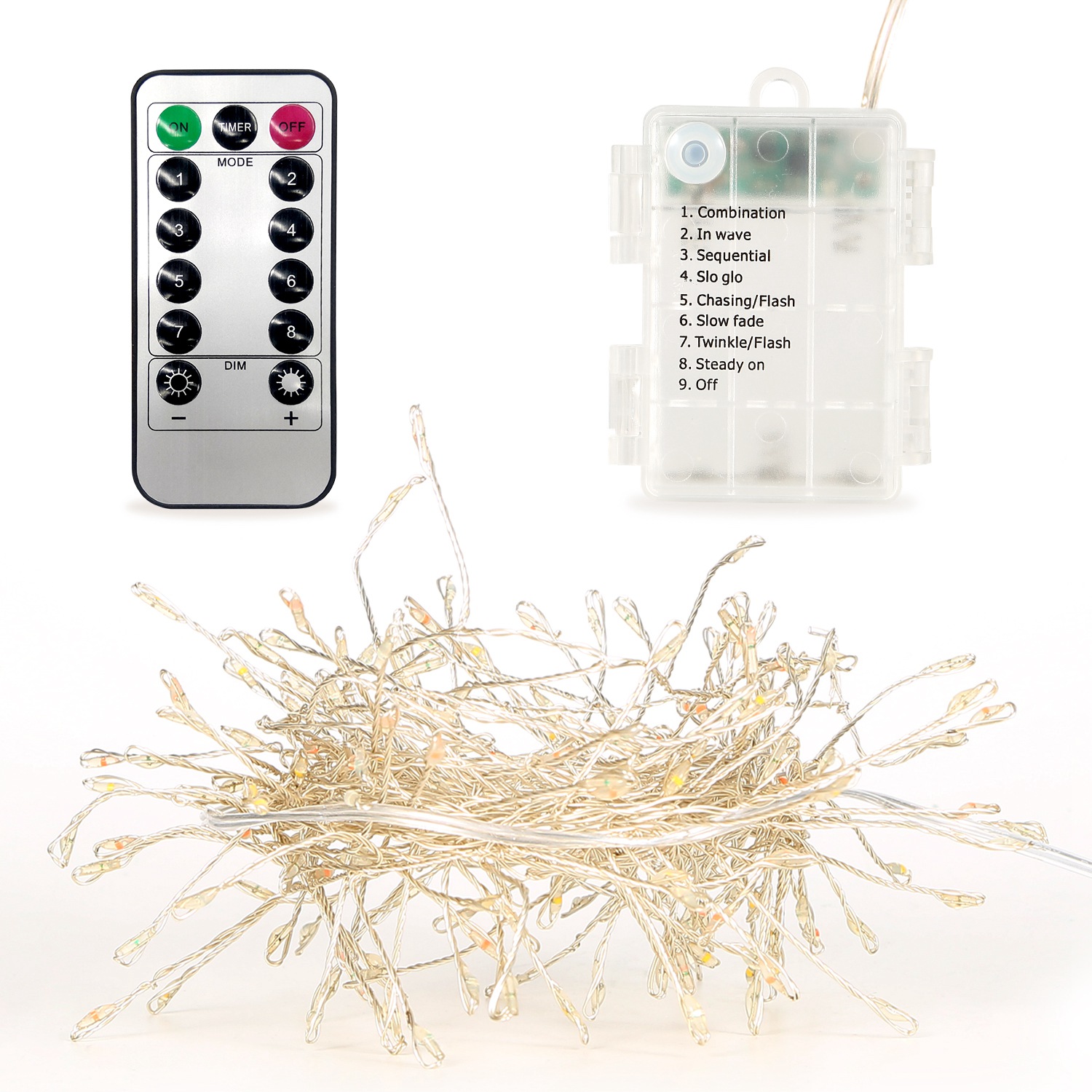 Battery: 3 x AA Batteries for Light String (Not Included), 1 x CR2025 Battery for Remote Control (Included)