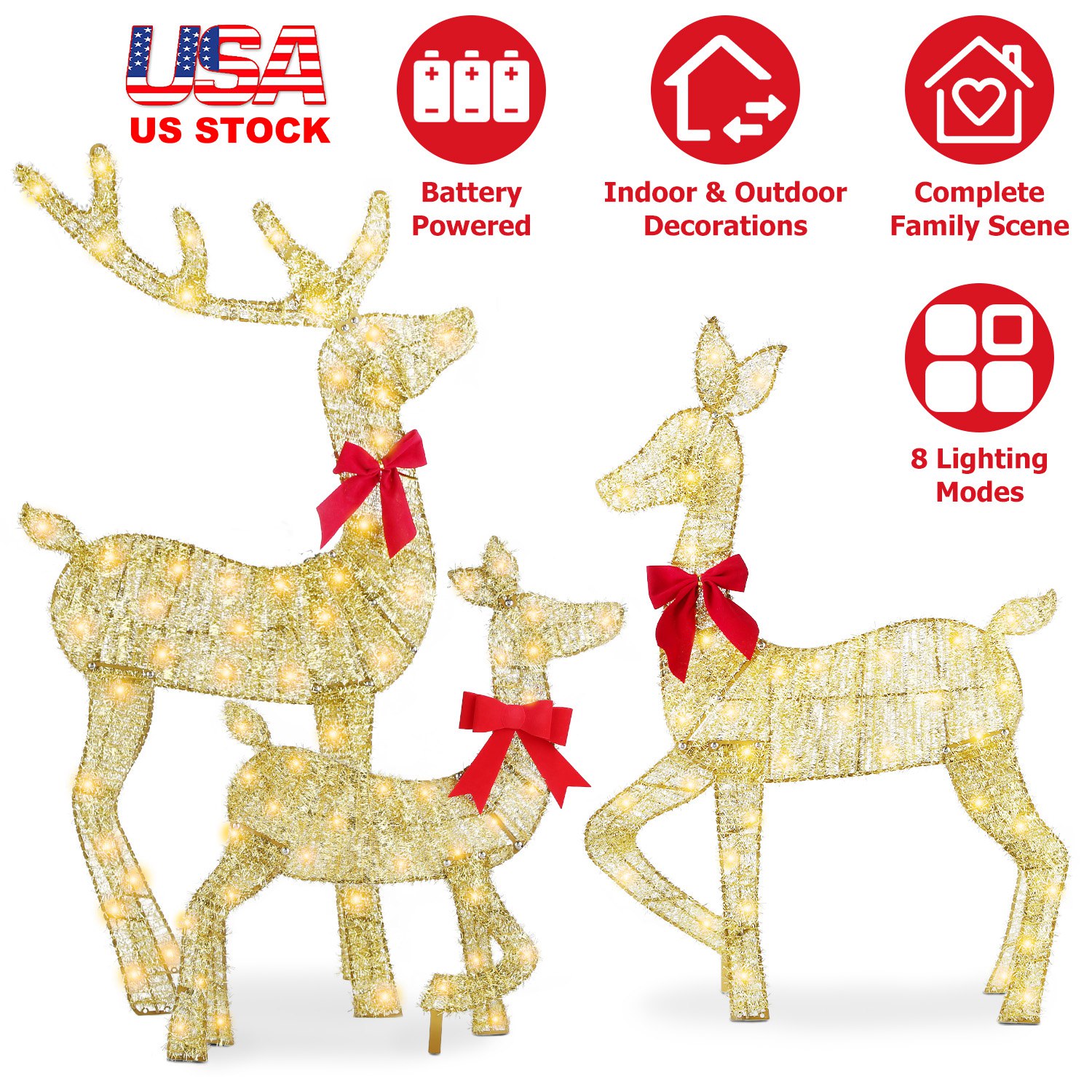 Home > 3 Pieces 2D Lighted Christmas Deer Family Set Indoor Outdoor Light Up Reindeer Decorations Lighted Buck Doe Fawn Display with 8 Lighting Modes