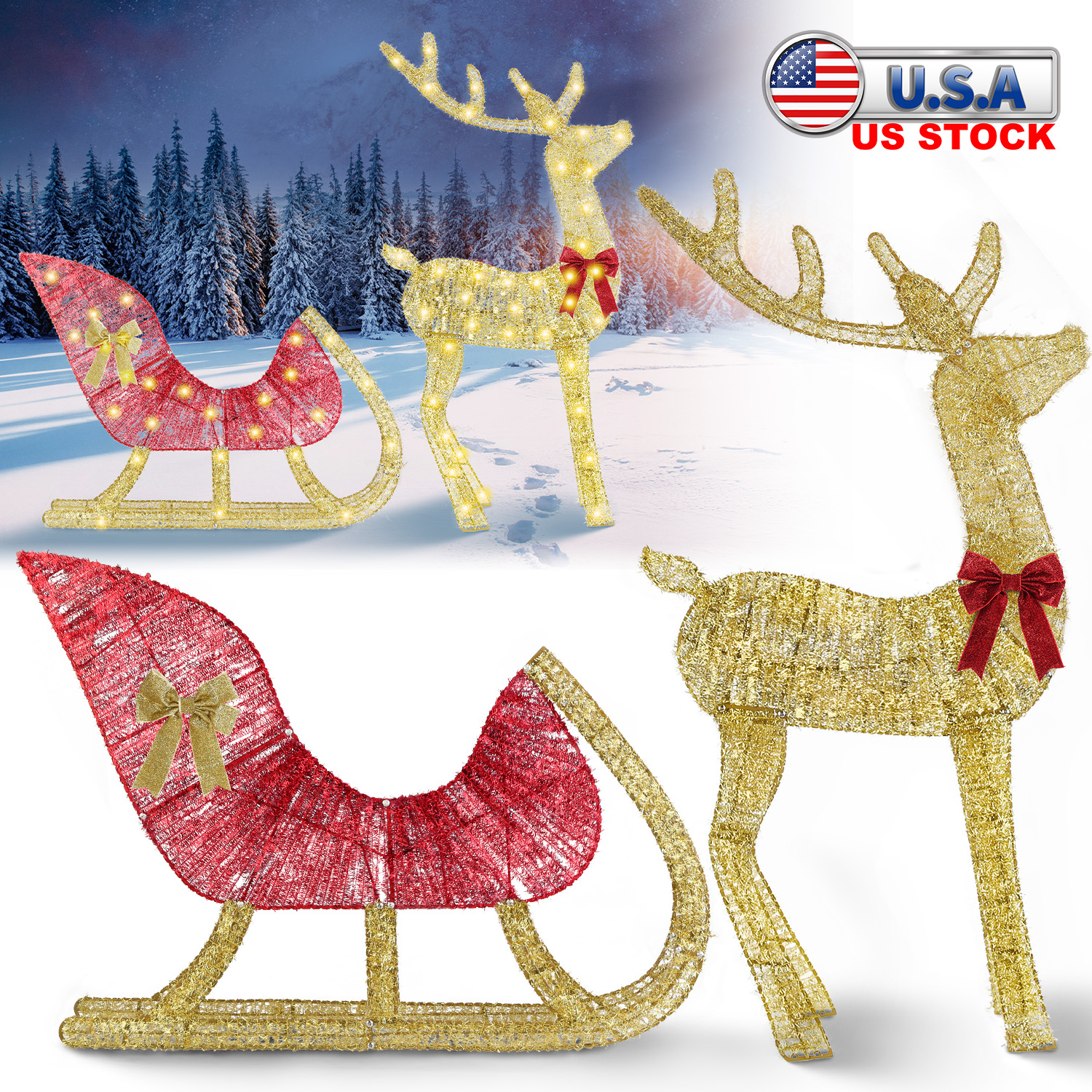 Lighted Christmas Reindeer & Sleigh Indoor Outdoor Christmas Decoration Christmas Lighted Display with 8 Lighting Modes