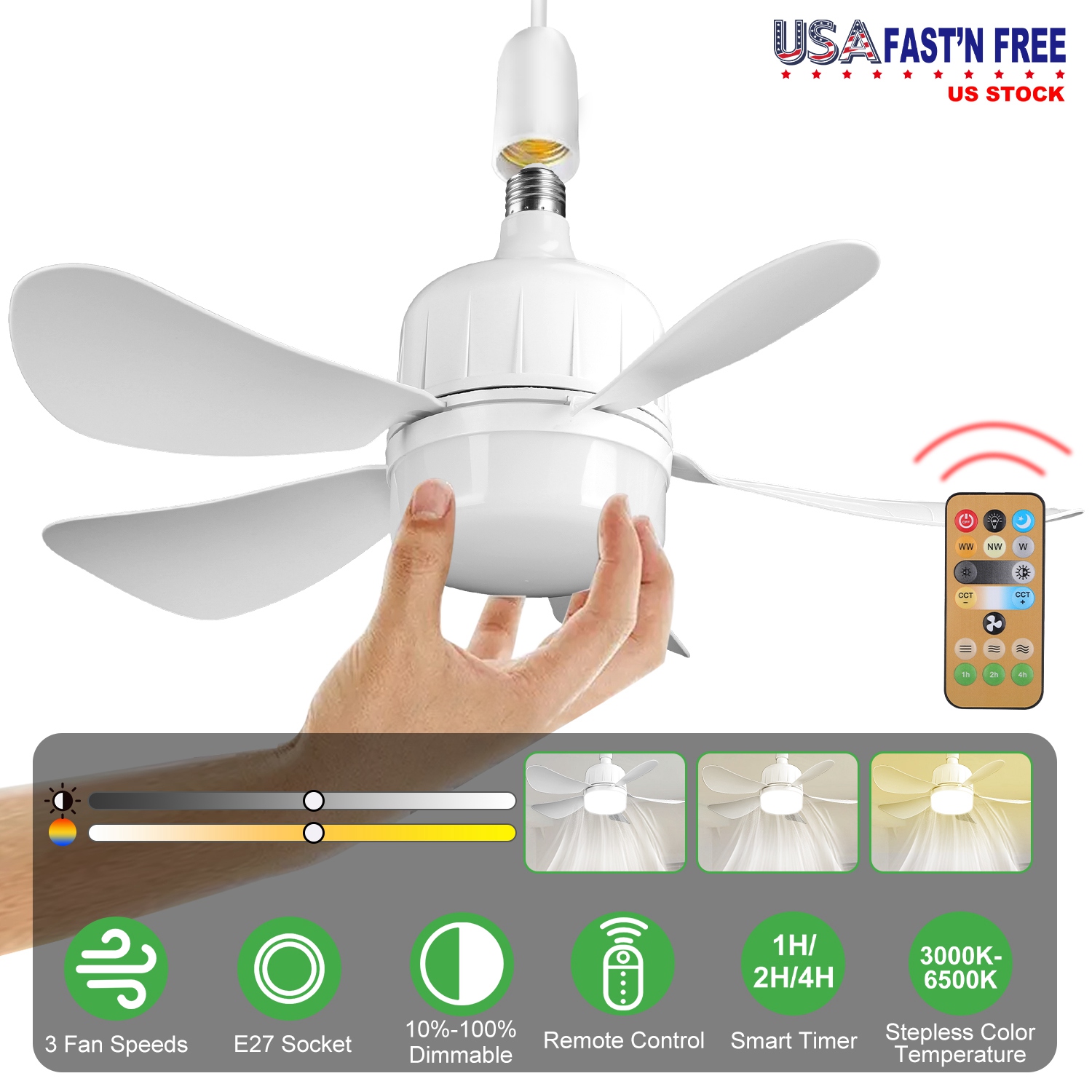Socket Fan Light 12W Ceiling Fan with Lights Dimmable LED Ceiling Fan with 3 Fan Speed Stepless Brightness and Color Temperature Smart Timer Remote Co